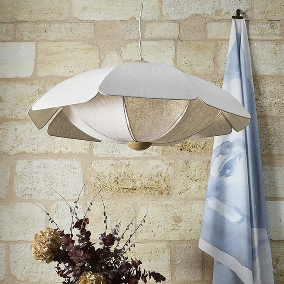 The Coquillage hanging light combines stylish design with high-quality materials such as linen, wood and metal. This combination gives any room an elegant yet natural atmosphere. The cream colour ensures soft light distribution, providing harmonious lighting in the living room, dining room or bedroom.