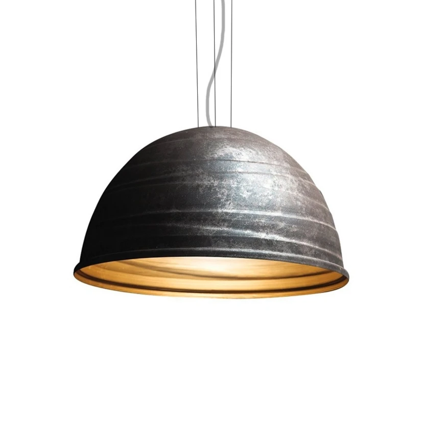 A metallic sheen surrounds the BABELE pendant light It is simply manufactured and yet has what it takes to be a modern highlight of light: the BABELE pendant light from the Italian design company Martinelli Luce impresses with its timeless elegance. The semi-circular lampshade gives the impression of being made from several layers of the finest aluminium. A delicate marbling and a silver-grey shimmer cover the surface, elegantly enhancing the design. The inside is painted a shimmering gold, which not only gives the pendant light decorative accents but also creates an even, bright lighting effect that bathes the entire room in a dignified ambience. Whether in private or public spaces - the BABELE pendant light is always an eye-catcher! The lights from Martinelli Luce seem to be inspired by Nature and geometric forms, creating functional lighting systems. These are created from materials that reflect the true characteristics of the lights. Some of these unique lights are exhibited in the most important design museums in the world. Martinelli Luce not only offers lights for private use, but also technical systems that have been specially developed for use in offices, shops, hotels and other public areas. The focus here is on modern technologies that optimise energy consumption and offer new possibilities for light to unfold.