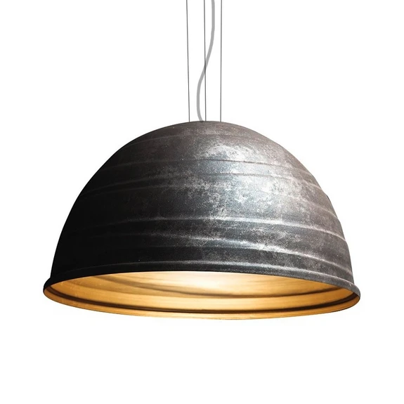 A metallic sheen surrounds the BABELE pendant light It is simply manufactured and yet has what it takes to be a modern highlight of light: the BABELE pendant light from the Italian design company Martinelli Luce impresses with its timeless elegance. The semi-circular lampshade gives the impression of being made from several layers of the finest aluminium. A delicate marbling and a silver-grey shimmer cover the surface, elegantly enhancing the design. The inside is painted a shimmering gold, which not only gives the pendant light decorative accents but also creates an even, bright lighting effect that bathes the entire room in a dignified ambience. Whether in private or public spaces - the BABELE pendant light is always an eye-catcher! The lights from Martinelli Luce seem to be inspired by Nature and geometric forms, creating functional lighting systems. These are created from materials that reflect the true characteristics of the lights. Some of these unique lights are exhibited in the most important design museums in the world. Martinelli Luce not only offers lights for private use, but also technical systems that have been specially developed for use in offices, shops, hotels and other public areas. The focus here is on modern technologies that optimise energy consumption and offer new possibilities for light to unfold.