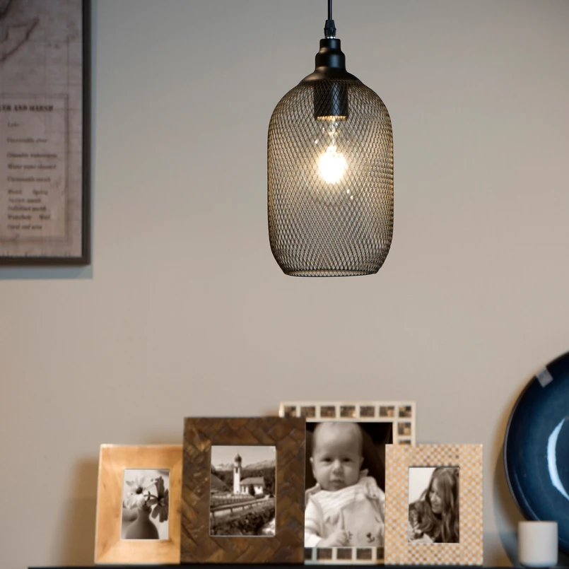 Decorative Mesh pendant light in a trendy cage design The bulb in the Mesh pendant light is surrounded by a black, oval-shaped metal cage, which leaves the light source completely unobstructed thanks to its fine lattice structure, ensuring that light is emitted from all sides. The light looks particularly original when fitted with a decorative Globe bulb (see accessories). Dimmable via house connection.