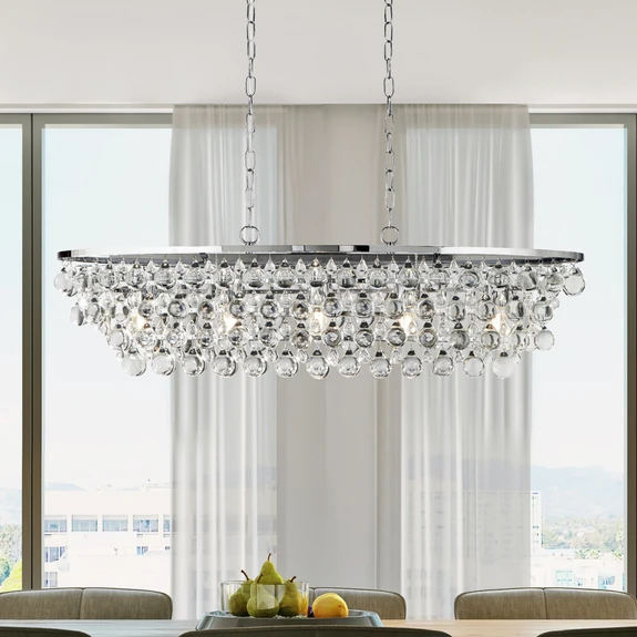 Michelle pendant light, chrome/clear, crystal glass, 92 cm, E27