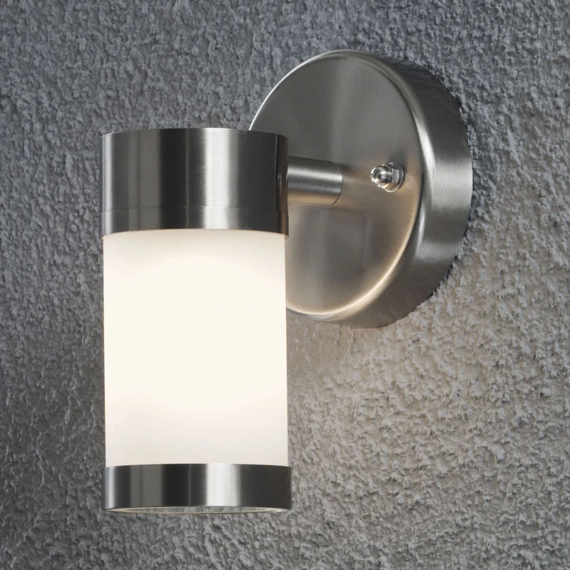 Outdoor wall lamp Modena in stainless steel with satined glass