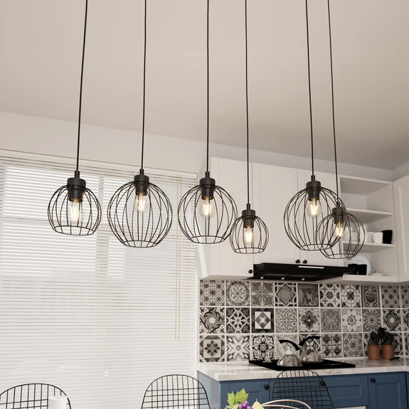 The Nando pendant light, made of high-quality steel, embodies modern design and fits seamlessly into various living areas such as the living room, dining room and kitchen. With its stylish black colour scheme and the option of integrating up to six bulbs, it creates an impressive lighting atmosphere that is both functional and aesthetically pleasing.