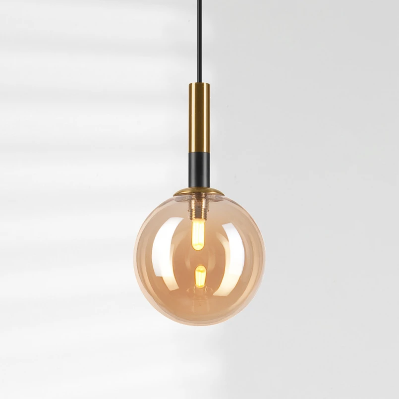 The Natalia pendant light combines modern design with high-quality materials such as glass and steel to create a stylish ambience. The golden and amber colour scheme gives any room a warm and inviting atmosphere. This light is ideal for living and dining rooms, where it enhances the interior design as a central element.