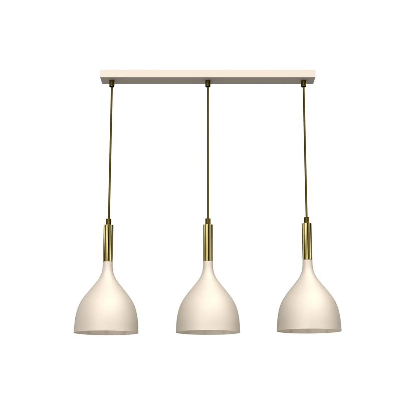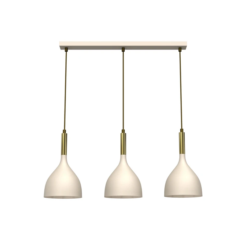 Noak pendant light, 3-bulb, beige/gold, elongated, steel