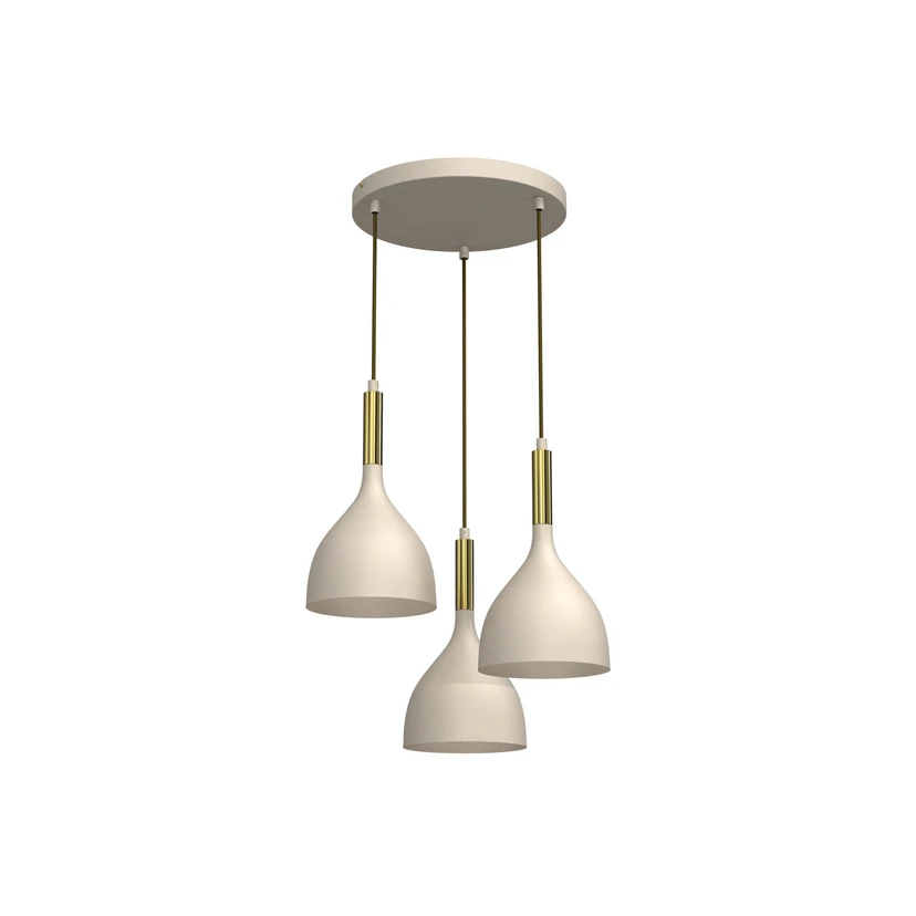 Noak pendant light, 3-bulb, beige/gold, round, steel