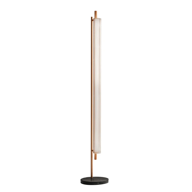 The Trisel floor lamp is an elegant and timeless composition of metal, glass and marble. It can be used in a variety of ways in private living spaces and public lounges. The warm white LED light is emitted all around through the cylindrical diffuser made of borosilicate glass with a fine groove pattern. Knurled elements complete the design.