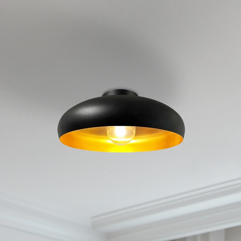 Olli ceiling light: elegance in black/gold for four rooms Experience how the Olli ceiling light in black metal with golden accents creates an atmosphere of elegance and warmth in your living space. This European-made lighting solution is not only a testament to quality and local craftsmanship, but also a versatile design element for the living room, dining area, kitchen or hallway. The Olli ceiling light, equipped with an E27 base, offers flexibility in the choice of bulb and allows you to customise the lighting mood to your liking. Although a dimmer is not included, the brightness can be adjusted using an external dimmer to achieve the desired ambient lighting. With the Olli ceiling light, you can bring a piece of quality craftsmanship and stylish design into your home.