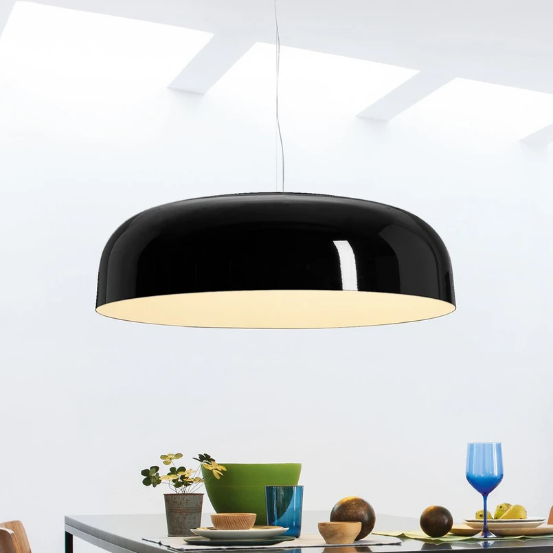 The Canopy LED pendant light owes both its shape and its name to the ceiling rose, one of the simplest and most often neglected elements of lighting technology, used to conceal the cables coming down from the ceiling. Francesco Rota revisits this shape, enlarging and refining it to make it the focal point of the design – a large metal shade available in a range of sought-after colour combinations. Inside the dome is a special light source, the circline LED, which diffuses a soft, smooth light into the surrounding area.
