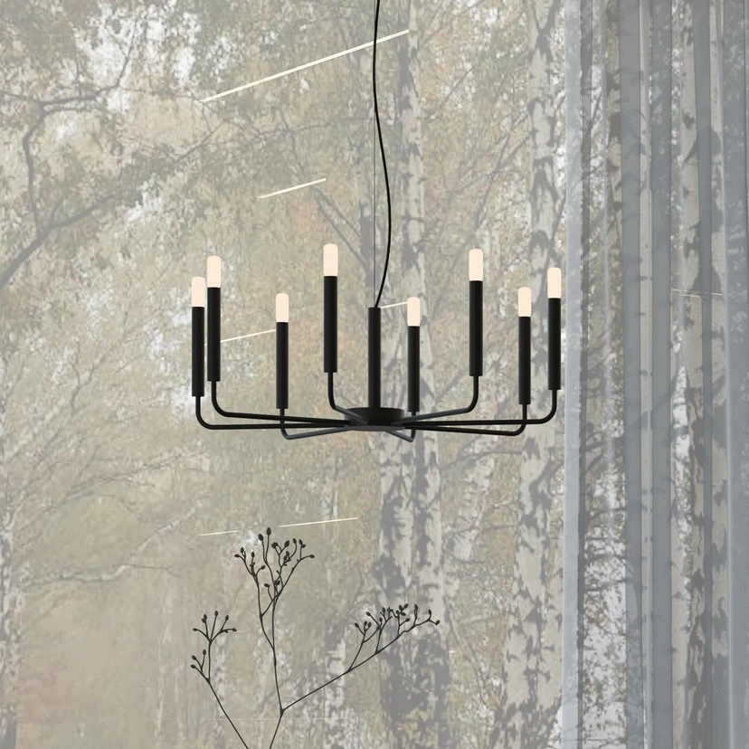 The ORTO chandelier combines timeless elegance with modern functionality, making it a stylish centrepiece in any living or dining room. Made from high-quality steel and finished in an elegant black, this chandelier blends harmoniously into modern interior styles. The eight lights provide even and pleasant illumination of the room, while the standardised E14 socket allows for easy replacement of the LED light source.