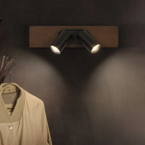 Modern MERCURY ceiling spotlight with two spots and wooden cover