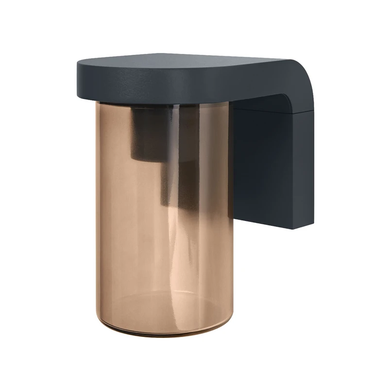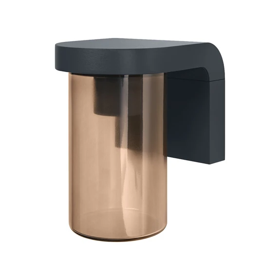 Modern series of lights made of aluminium with vintage or clear glass diffuser. Product features: Direct lighting. Diffuser material: Glass. Diffuser colour: Amber or clear. Housing material: Aluminium. Housing colour: RAL 7016. IP code: IP44. Product advantages: High flexibility in the choice of bulb thanks to E27 socket. Quick and easy installation. Areas of application: Illumination of façades. Terraces, balconies. Path lighting. Driveways. Technical features: Complete mounting and connection accessories included. Bulb not included. Safety instructions: All electrical connections must only be carried out by qualified personnel. Caution, risk of electric shock. Product of protection class I. All electrically conductive, metallic housing parts that can become live during operation or maintenance in the event of a fault must be connected to the protective earth conductor throughout.
