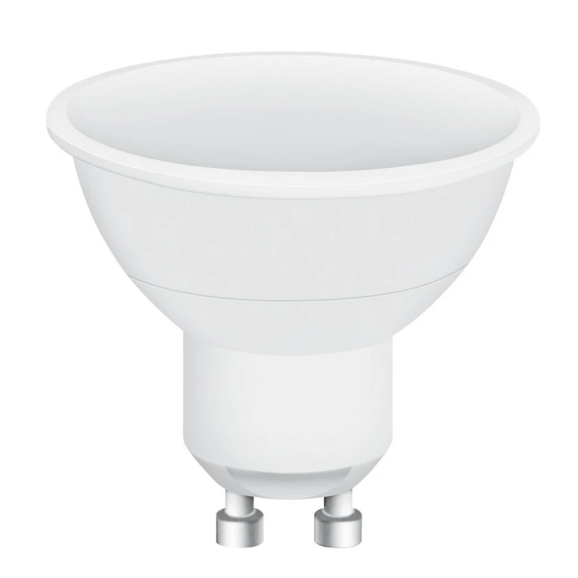 Installed in a spotlight with GU10 socket, this illuminant provides not only warm white lighting like a conventional halogen lamp, but also colored light and even four preset light scenarios. The included infrared remote control allows convenient and individual control of the light. In each selected light color, the brightness can be dimmed in four steps via the remote control.