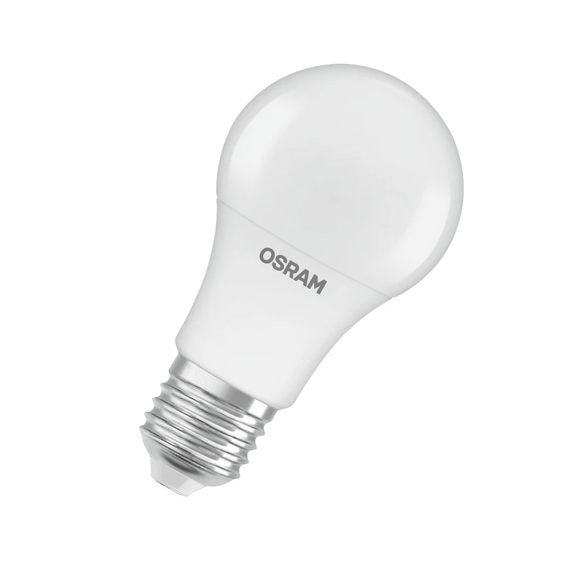 Made from recycled plastic: OSRAM Classic Star LED bulb, E27, 10 W, 4,000 K The Classic Star LED bulb with E27 base produces cool white light and also impresses with both its classic retrofit size and its matt surface. As there are no UV or near-infrared components in the light beam, this bulb is ideal for illuminating heat-sensitive objects such as food or plants. Classic Star is made from at least 40% recycled plastic, produces 100% light immediately without warm-up time and is a universally applicable LED bulb.