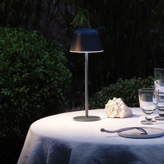 ENDURA STYLE decorative LED rechargeable table lamp for indoor and outdoor use Colour temperature switch (CCT): 2700 K, 4000 K, 6500 K. IP code: IP54. Product advantages: Portable table lamp. Rechargeable battery with high capacity - 4400mAh. Switching and stepless dimmable via a touch-sensitive sensor: 5%-100%. Areas of application: Outdoors where light is needed but there is no power point. Patios, balconies. Technical features: Charging cable included.