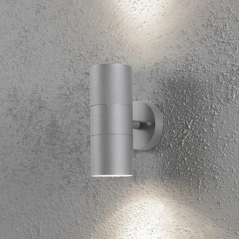 NEW MODENA outdoor wall light - simple, modern design for outdoor lighting This outdoor wall light lends modernity to an environment with its simple design. The NEW MODENA light is 2-bulb and emits light both upwards and downwards. The light is a production of the "Modern" series and therefore has the typical features of the line. It is of high quality and enhances outdoor areas, such as gardens, with its modern appearance.
