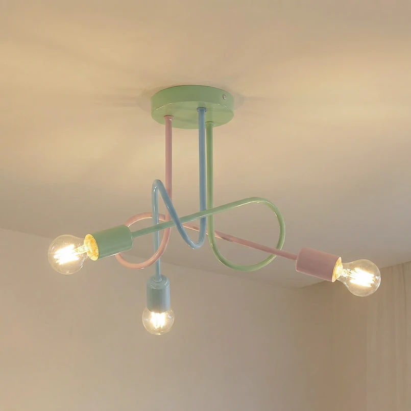 The Oxford ceiling light combines modern design with a youthful living style. Made of high-quality metal, it impresses with its harmonious colour scheme in light pink, light blue and mint green. With its three light sources, it provides even and pleasant lighting in various rooms such as the living room, dining room or hallway.