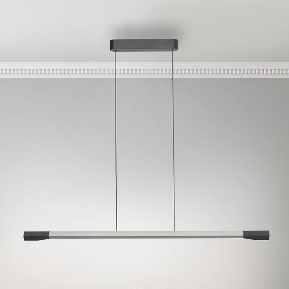 Dimmable LED hanging light Hoop - height-adjustable thanks to Comfort Lift The Hoop LED hanging light from Paul Neuhaus represents a contemporary lighting concept designed for the living room as well as the dining room and kitchen. The permanently installed LED light sources are characterised by their energy efficiency and offer a pleasant lighting atmosphere, which can be individually adjusted using the external wall switch thanks to the included dimmer. The height adjustment of the lamp enables flexible adaptation to different room concepts and table heights. With its modern design made of iron and aluminium, the Hoop hanging light blends seamlessly into contemporary furnishing styles and becomes the central element of any Raumgestalt - Built-in memory function