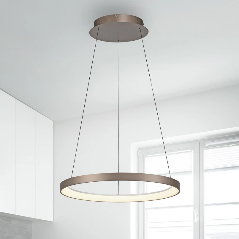 Paul Neuhaus LED hanging light Hoop, brown, Ø 57 cm, dimmable