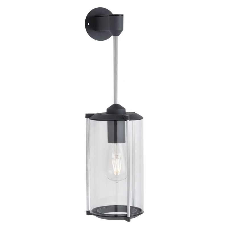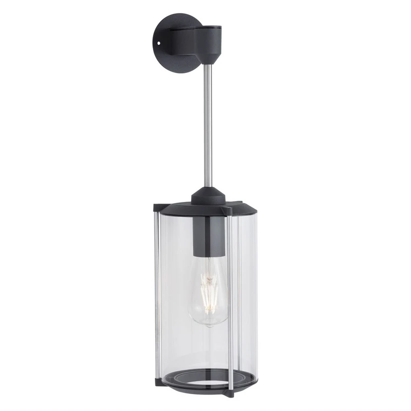 The Classic outdoor wall light cuts a fine figure, especially next to the entrance, and lends its surroundings a stylish flair. Its appearance with the cylindrical shade is very classic and elegant, but its clear lines also give the design a touch of modernity. The shade is made of glass and is framed by a frame made of dark grey and silver metal. Inside it is an E27 socket, which is freely visible through the transparent glass, which is why an optically attractive lamp is recommended here.