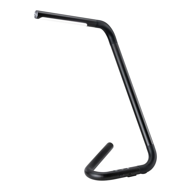 FlexLink LED table lamp with rechargeable battery and adjustable light colour The FlexLink LED table lamp, which is equipped with a rechargeable battery, is a very practical light source that can be used not only at home at your desk, but also on the go. It can be folded flat for transport and fits in any bag. The light can be switched on and off via switches in the base of the light, the light colour can be adjusted from warm white illumination with 2,700 K to bright daylight with 6,000 K and the brightness can be dimmed. The rechargeable battery built into the light can be recharged via the USB cable supplied on a PC or a power bank.