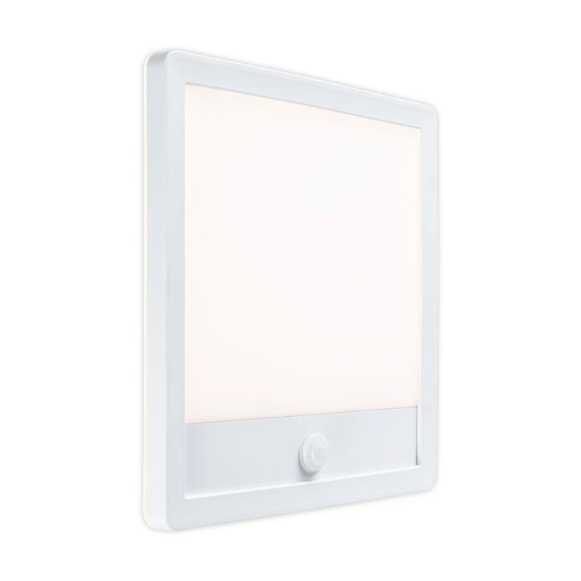 LED outdoor wall light Lamina Sensor CCT The angular LED outdoor wall light Lamina is seawater resistant and thus can also be used near the coast. It is equipped with motion sensor and daylight sensor and creates a beautiful atmosphere in the outdoor area, because it shines permanently with 20% brightness in warm gold light (2,200 K) at nightfall, which is particularly insect-friendly and has a decorative backlight effect. If the sensor detects movement, it switches to 100% brightness and warm white light color (3,000 K) for a period of 30 seconds. It then switches back to 20 % brightness. The permanently illuminated orientation light can also be deactivated via the wall switch so that the luminaire is only switched via the motion detector. The motion detector can also be deactivated so that the light is only switched on via the twilight sensor and switched off again in the morning