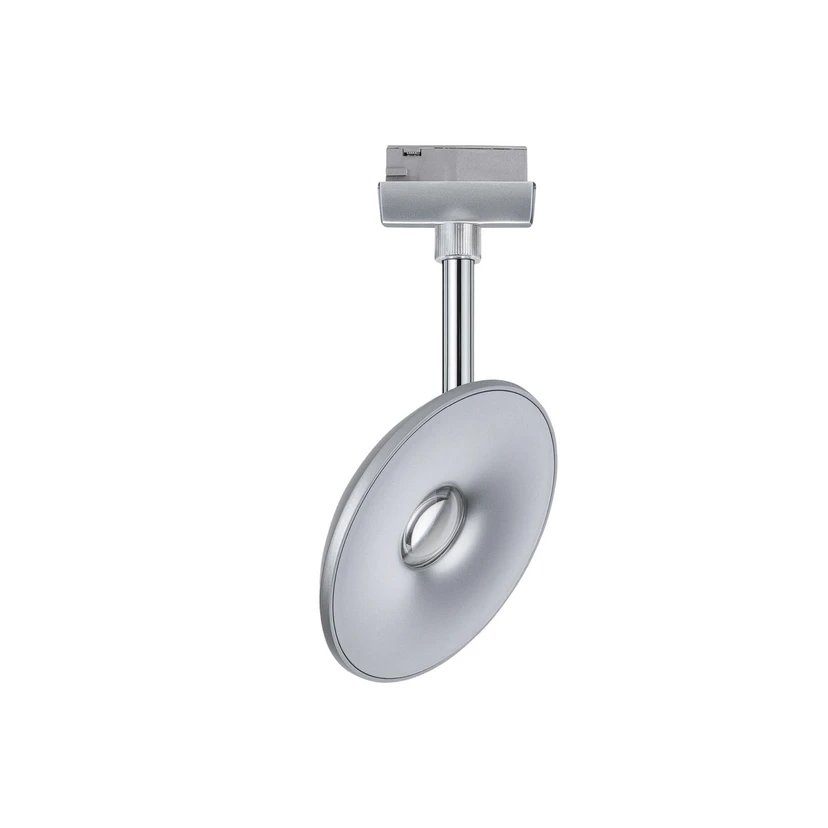 LED spot Eye in matt chrome for the URail track lighting system The LED spot Eye for the URail track lighting system is equipped with a spherical lens in the centre of the round light, which emits the light at an angle of 72° and can be directed as required. The spot is only suitable for the track lighting system and can also be dimmable with a suitable dimmer (R+C f. electr. transformer + 230V lamps). In combination with tracks and other lights as well as the appropriate accessories, URail creates a customised lighting system with a total output of up to 1,000 W.