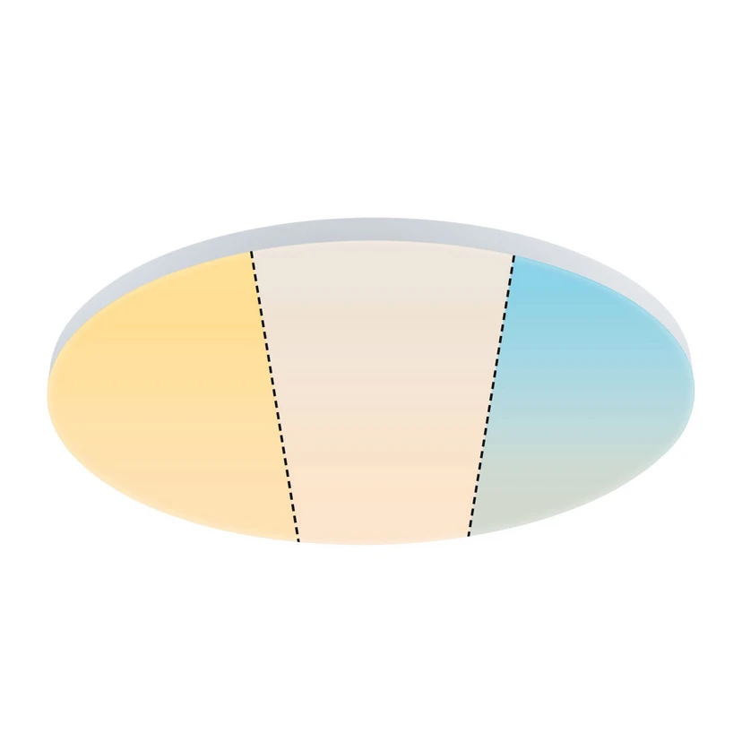 Velora LED panel with adjustable light colourThe large Velora LED panel with white metal frame and satinised plastic diffuser provides homogeneous general lighting and also illuminates large rooms. The colour temperature of the light can be adjusted in three stages (warm white, universal white or daylight) via the light switch.