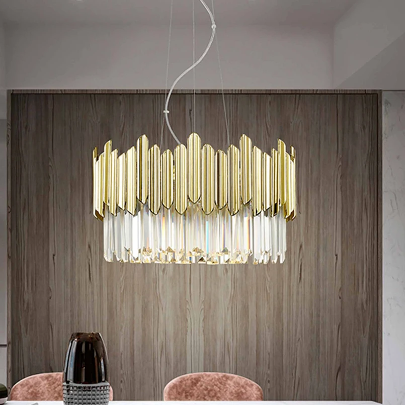 Pendant light Tiara, round, faceted glass, chrome/gold