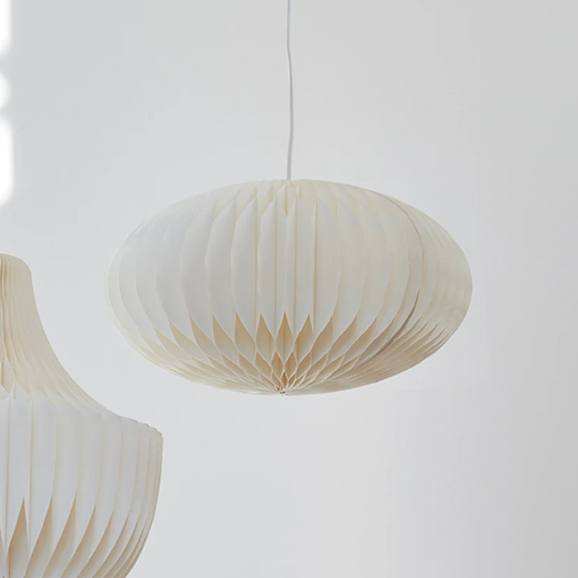 The Anita pendant light impresses with a decoratively designed paper shade in white. The radiating light creates a cosy lighting mood in living rooms, bedrooms and hallways.