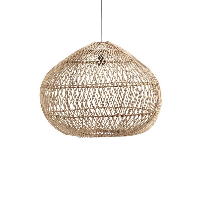 The Karen hanging light brings cosiness and light into your living room or bedroom. It is made of twisted rattan. As this is a natural material, slight variations in size may occur and the colour may change over time. It comes with a plastic cable approx. 1.2 m long and is designed for ceiling mounting. The lampshade is included in the delivery.