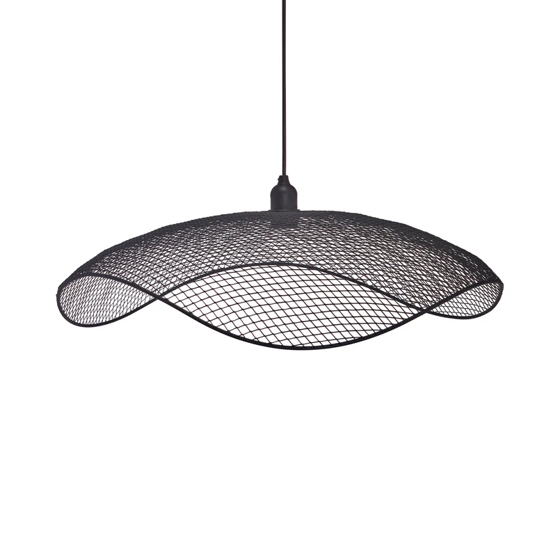 The Vivi pendant light is a pendant light made of metal mesh in black. When lit, the light escapes through the mesh and casts reflections into the room and onto the ceiling. With black plastic cord and ceiling canopy for hook suspension