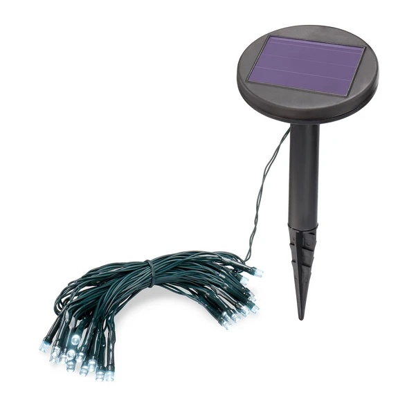 LED solar string lights with twilight sensor - Height of ground spike incl. solar unit: 25 cm (including 9 cm ground spike) - Solar module dimensions: 11.6 cm x 9.7 cm - Rechargeable battery: Micro (AAA) NiMh 1.2 V/600 mAh - Amorphous solar module 2 V/12 mA - Incl. twilight sensor - Adjustable flashing or continuous light