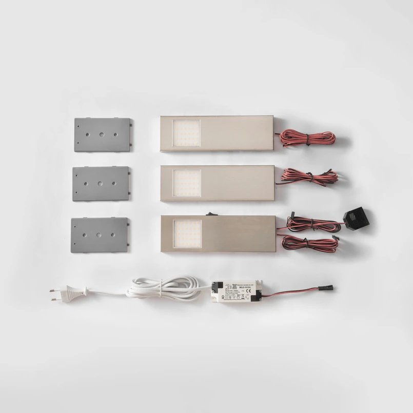 Beautiful set of three angular stainless steel under-cabinet lights with LEDs: the Lorna under-cabinet light