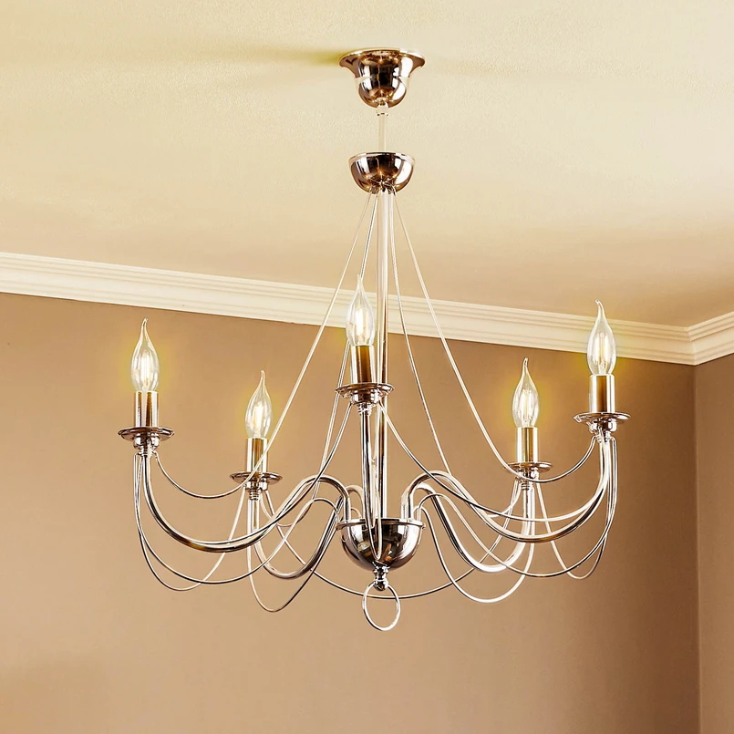 The Retro chandelier impresses with its timeless design and high-quality workmanship in robust steel. The elegant chrome colour gives every room a special touch and harmonises perfectly with various interior styles. With five light sources, this chandelier provides even and pleasant lighting that creates an inviting atmosphere in both the living room and dining room.