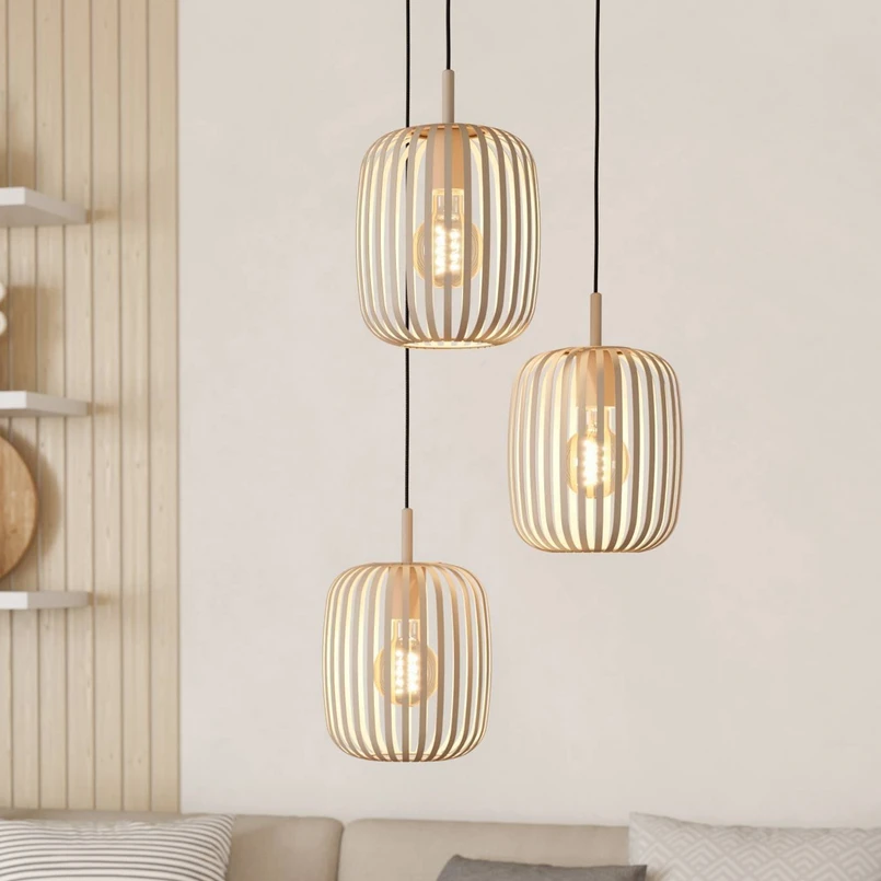 Romazzina pendant light, Ø 46 cm, sand-coloured, 3-bulb, steel
