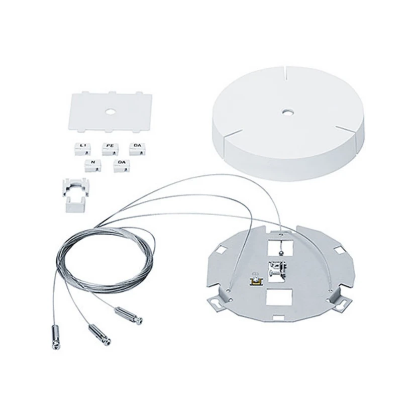 Wire suspension for Ondaria LED office lights With this wire suspension, the LED ceiling lights in the Ondaria series can be used alternatively as pendant lights. It consists of a three-part suspension, clamp connection, retaining plate and canopy - Mounting height of the light can be adjusted during installation - Minimum mounting height: 40 cm for Ondaria Ø 59 cm/Ondaria Ø 87 cm, 80 cm for Ondaria Ø 11.5 cm
