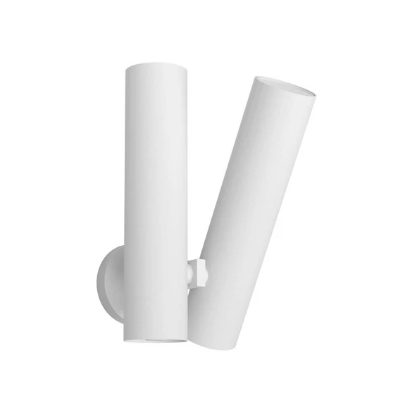 Two slim cylinders made of aluminum contain the LED light sources of the wall lamp Tobu W1. The two light heads are separately switchable and dimmable by means of the switch at the bottom of the cylinder. In addition, the cylinders can be tilted 30° to each side. Basically, however, they are designed to emit light upwards and illuminate the ceiling, so that the room as a whole is bathed in indirect light.