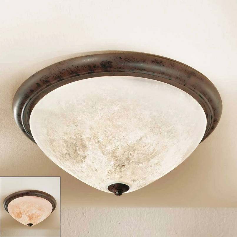 Impressive country house ceiling lamp Samuele with cream-coloured glassThe country house ceiling lamp Samuele convinces with a very large glass shade. This shade not only provides a lot of light, but is also very decorative thanks to its own colourful finish with a beautiful pattern. The lampshade is available in two versions according to your wishes.