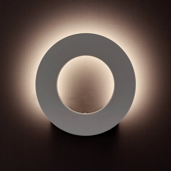 The white painted aluminium body of the LED outdoor wall light Santorini is designed as a circular ring, which is mounted with a little distance from the house wall. Behind this circular ring are the LEDs, which provide indirect light due to their positioning. With the LED outdoor wall light Santorini, the outdoor area of the house is not only safely illuminated, but also visually appealing.