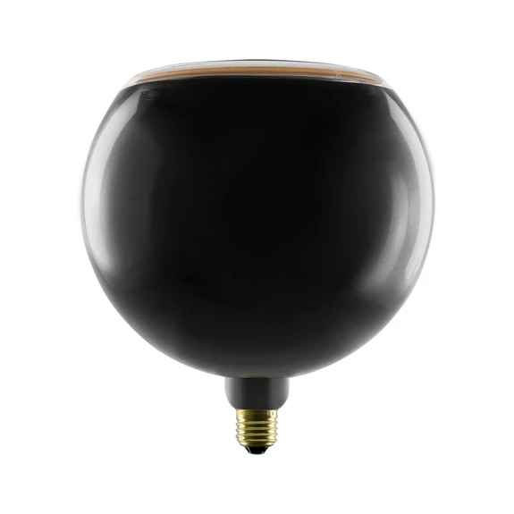 E27 LED globe bulb Floating, Ø 20 cm, 4 W, black glass bulb This E27 LED bulb from the Floating series is fitted with a black glass bulb in a large G200 globe shape, which is open at the opposite end to the base. The diodes are integrated in the ring-shaped opening. The E27 metal base has a gold finish, while the patented soft filament technology and attractive light reflections give the bulb additional decorative value. Ideal for open lights without a lampshade or exposed bulb lights - externally dimmable (phase cut-off) - extra warm white light - good colour rendering (CRI 90) - handmade glass bulb