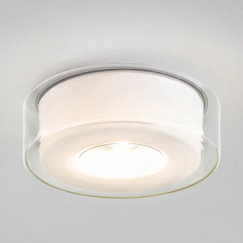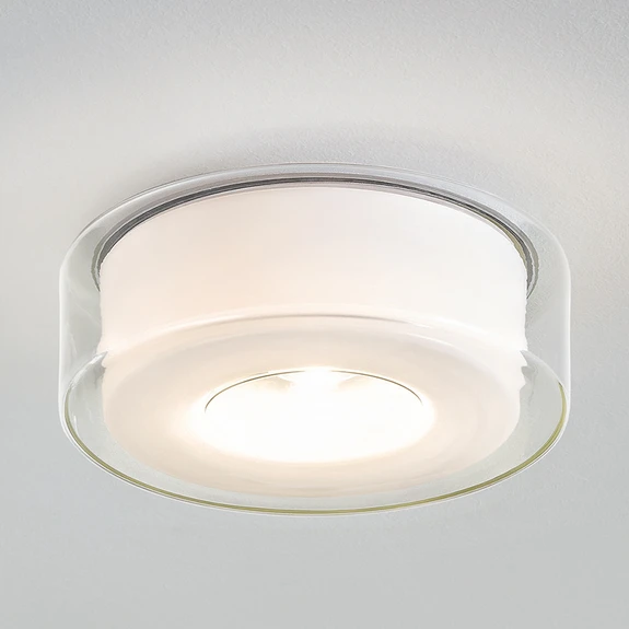 A round, transparent shade in the shape of a ring encloses an opal diffuser, which also has a recess in the middle. The light of the permanently installed, warm white LEDs emerges from inside the ring and radiates directly downwards and also indirectly through the matt diffuser. When developing the LED ceiling lamp Curling, the designers Jean-Marc da Costa and Manfred Wolf, the two founders of serien.lighting, did not lose sight of either the practical or the visual aspect. The result is a versatile all-rounder that can be used practically anywhere. Curling is often used in the living room and bedroom as well as in business premises or in public areas. With the outstanding energy-efficient and long-lasting COB LEDs, whose dimmability is possible via a phase-on or phase-off dimmer, Curling collects further plus points.