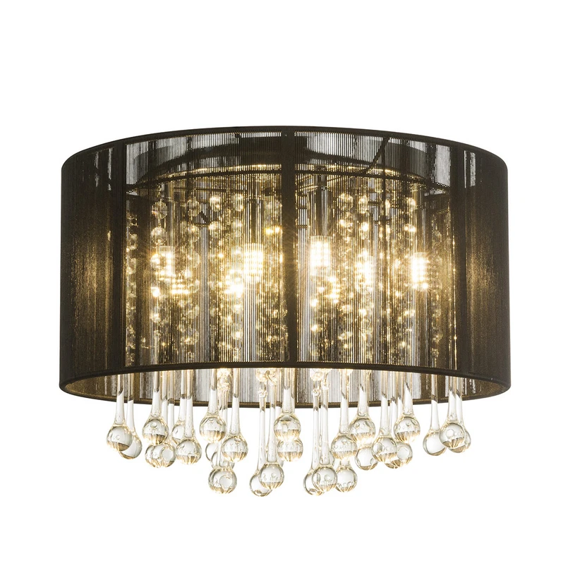 Chic Sierra LED ceiling light - elegant silk lampshade and sparkling glass crystals