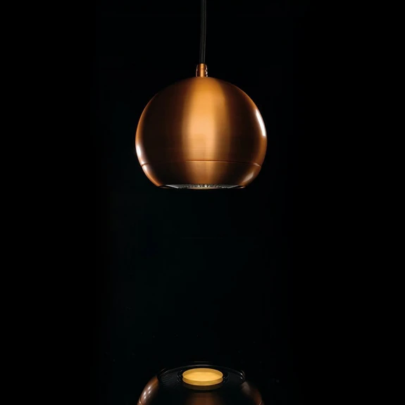 Elegant, copper-coloured Light Eye pendant light The shapely, spherical lampshade of the Light Eye pendant light is open at the bottom and emits a direct beam of light. The copper-coloured housing emphasises the elegant finish and is suspended with a discreet, black textile cable. The copper colour is echoed in the round ceiling canopy, which harmoniously completes the picture. The pendant light can be perfectly combined with others of its kind and optimally illuminate long, narrow areas such as Theke counters. It also makes an attractive impression in the home above the dining room table or a chest of drawers - Bulb to be used: max. 75 W GU10 QPAR111 / ES111