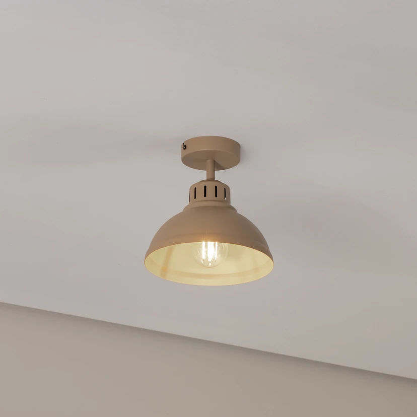 Industrial elegance for kitchens and hallways: Sven ceiling light Experience how the Sven ceiling light in beige not only illuminates your rooms with its industrial design, but also creates a special atmosphere. The 1-bulb light made of robust steel blends seamlessly into the design of the kitchen and hallway and becomes an eye-catcher in any interior. Although a dimmer is not included, Sven can be easily adjusted using an external dimmer to regulate the light as desired. Manufactured in Europe, this lighting element emphasises local quality and underlines the value of European craftsmanship.
