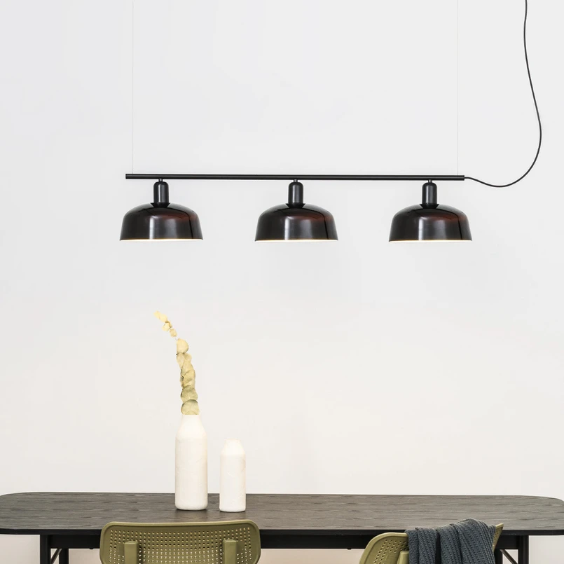 Tatawin hanging light, black, glass, length 100 cm, 3-bulb.