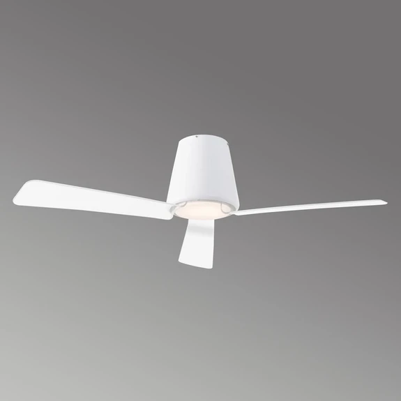 Garbí is a ceiling fan that impresses not only with its modern look, but also with its functionality. The three rotor blades are made of clear acrylic and appear almost completely invisible on the ceiling. In combination with the white frame, this creates a particularly harmonious and modern look.
