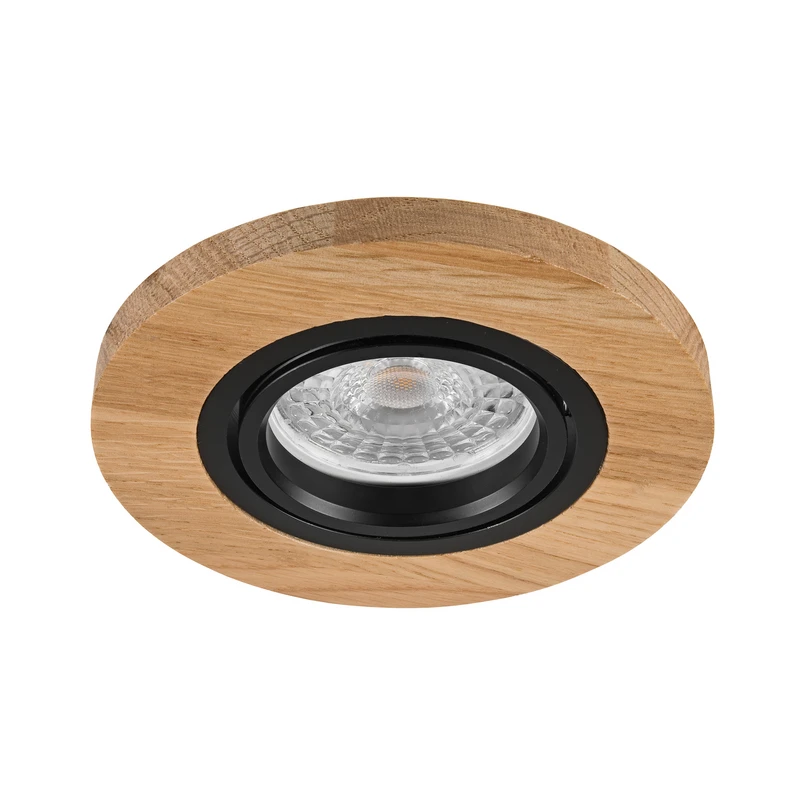Round recessed ceiling light Tobby made of oak with swivelling GU10 socket