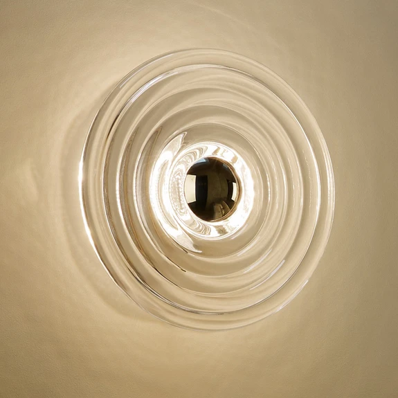 The LED wall lamp Press large impresses with its clear design and the use of high-quality glass with a bubble structure. With its transparent appearance, it blends seamlessly into various interior styles and sets stylish accents. The integrated LED light source provides energy-saving, warm white light that creates a pleasant atmosphere. The high colour rendering ensures natural and vivid colours.