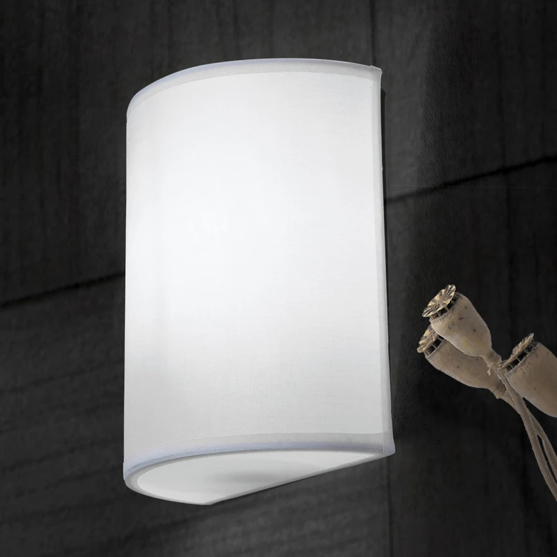 Semicircular Ufo wall light with textile shade The Ufo wall light emits soft light both upwards and downwards, and the light also shines forwards and to the sides through the fabric shade. Additional lighting with a very cosy effect, which is particularly desirable in living and relaxation rooms. With its modern yet very timeless design, the Ufo textile wall light is suitable for many furnishing styles.